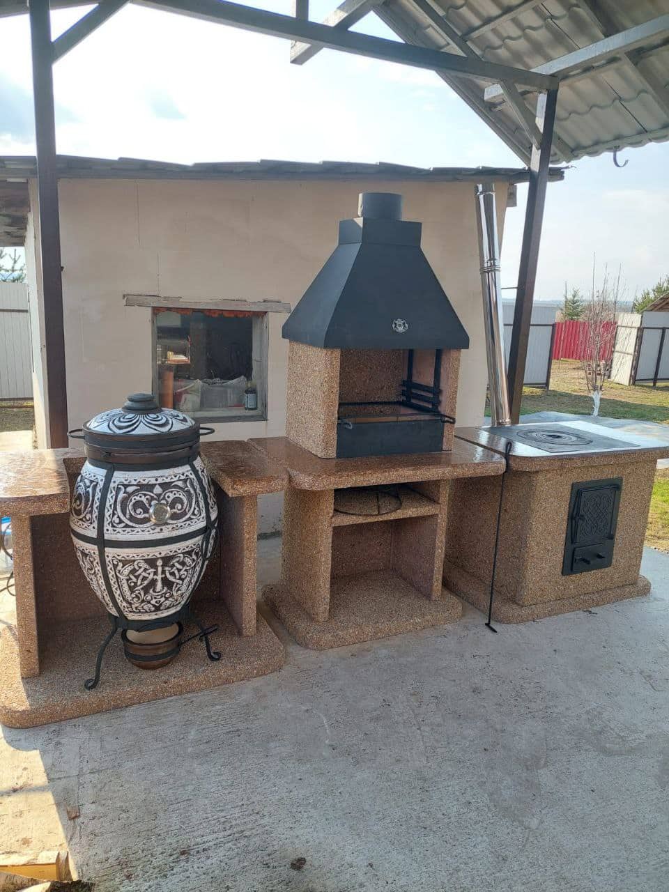 Подставка под тандыр из златолита — теплое дополнение для вашей уличной кухни! Прочность, устойчивость к перепадам температур и стильный дизайн сделают готовку удовольствием.Фактура «Золотая осень»: Златолит дарит золотисто-коричневые оттенки, как осенняя листва. Создает уютную атмосферу даже в городском дворе.Преимущества:✔️Выдерживает вес тандыра и высокие температуры.✔️Сборка за 20 минут без инструментов.✔️Гармонично сочетается с каменными барбекю-печами.