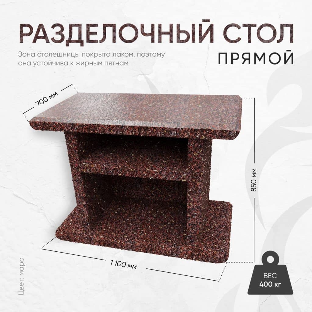Разделочный стол для смелых экспериментов на открытом воздухе! Яшма в столешнице устойчива к высоким температурам, жиру и маслам, а ударопрочность гарантирует долгий срок службы.Фактура «Марс» — терракотовые и кирпичные оттенки, создающие эффект марсианского ландшафта. Не выцветает под солнцем.Преимущества:✔️Легко очищается — достаточно протереть влажной тряпкой.✔️Устойчивость к перепадам температур ✔️Противоскользящая поверхность — безопасность при работе.